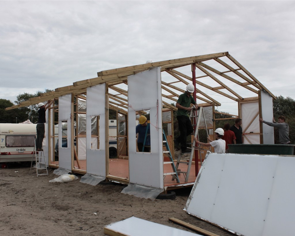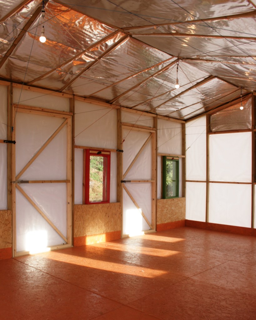 The Calais Kids Space was a crowd-funded and volunteer driven project, co-led by Richard O’Hanlon. Designed as a low-cost high-impact building, the demountable structure could be easily packed up and relocated. Emphasis was put into ensuring the space provided a comfortable atmosphere and dignity, whilst using simple materials. A timber frame structure was clad with translucent polycarbonate and lightweight corrugated roof sheets. In order to minimise costs, off-cuts of insulation and recycled glazing units were obtained from local building sites.