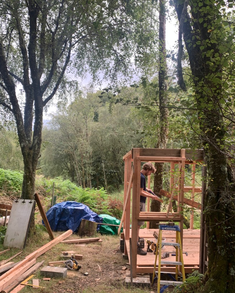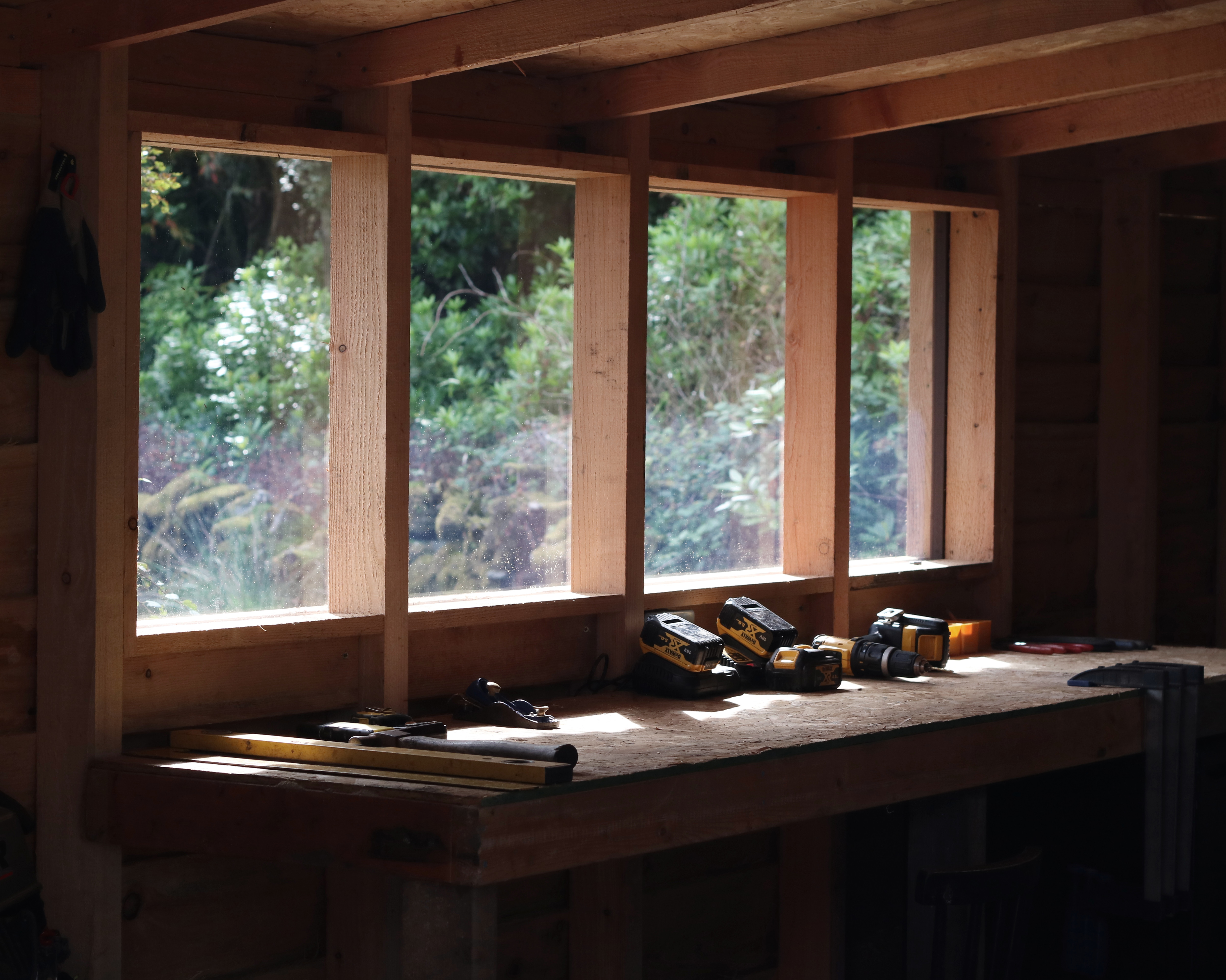 The client’s home sits overlooking an ancient oakwood in Argyll, Scotland. In her efforts to preserve and expand this woodland, the list of daily tasks and collection of tools is ever expanding. To create additional space to accommodate this, the Larch Workshop was designed and built over a period of three weeks.